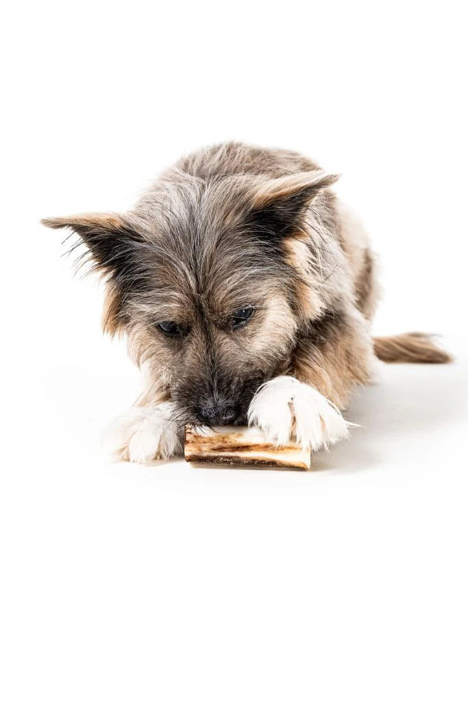Bison Marrow Bones! Utilizing even more of local, Colorado Bison with hindshank and femur marrow bones. From the slow-roasted bison on the outside to the rich, delicious marrow on the inside. Our bison marrow bones will keep dogs occupied and happy for hours!